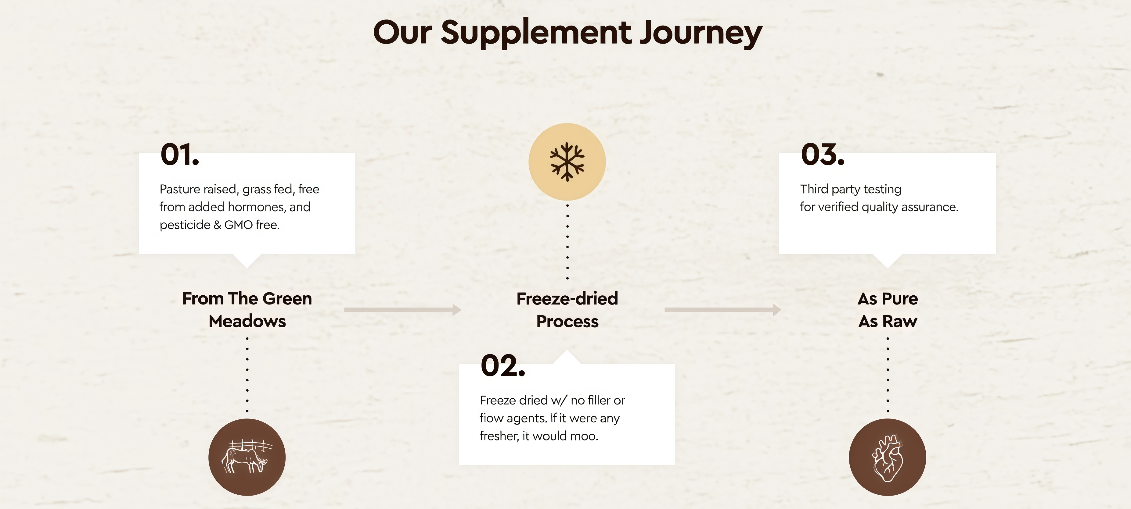 Our bodies crave nutrient dense foods, like animal organs, but these can be hard to find and consume. We suggest the convenience of our high quality supplements and choosing whole foods rather than processed foods. Eat like your life depends on it.